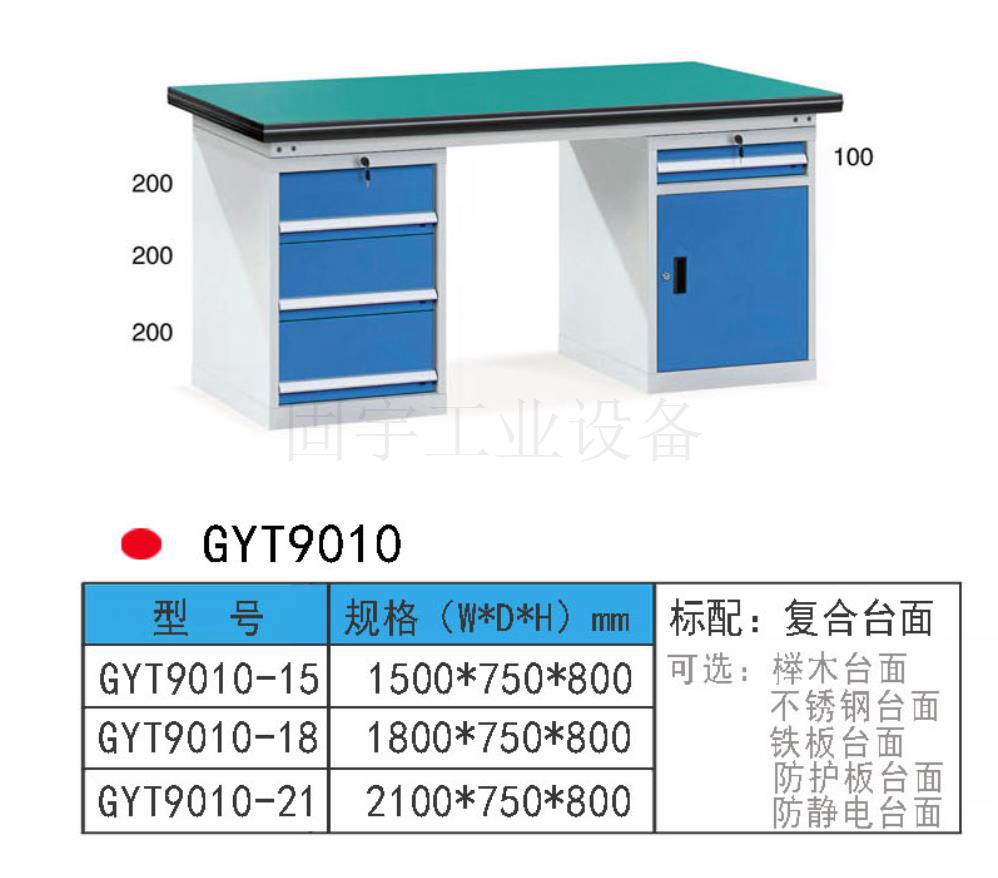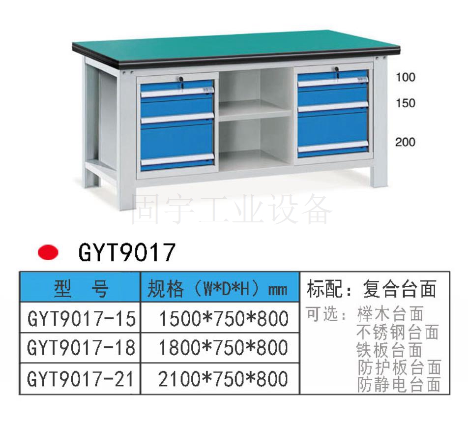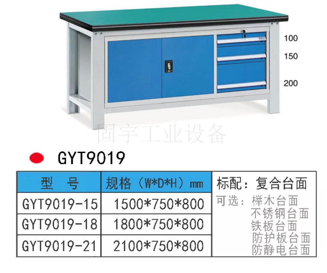工作臺采用優(yōu)質冷扎板精工制作而成,堅固的工作桌框架,牢固平穩(wěn),可使工作桌承重1000kg;多種工作桌面選擇,可配合不同使用的要求;工具吊柜(箱),側柜(箱)燈架,調節(jié)腳杯,,外形美觀;層板,抽屜質量上乘,承重大,抽屜內可根據需要任意分隔;節(jié)約空間,適用性強。 范圍 工作臺適合于模具、鉗工、檢測、維修、組裝等各種不同應用場合,具有良好的耐腐蝕性,耐臟性,抗沖擊性和承重能力強。桌面經特殊處理,具有防腐、抗沖擊力強等特點,多種桌面的選擇,可配合不同的使用要求;所配置的抽屜、柜門方便使用者存儲工具;桌角上預留電源孔,方便安裝電源插座。工作臺(桌)分為輕型(可承重300公斤),中型和重型工作臺(桌)可承重1000公斤及特制的工作臺。可根據需要靈活地配置各種吊柜、單柜、雙柜等,可加裝掛板,電器板,燈頂板、調節(jié)腳杯,輪子,擱板等桌上部件,具有多種選擇,能夠滿足各種工位的需求。 工作臺材質采用優(yōu)質冷軋鋼板,表面采用靜電噴涂處理而制成,堅固的工作桌框架,牢固平穩(wěn),可使工作桌臺面均勻承重達到1000kg。桌面有多種材質組成,適用于各行業辦公場所。可配合工具柜,吊柜,掛板,單開門柜使用。抽屜、承辦承重大,性能好,抽屜里可根據需求配置分隔條 工作臺分類:根據臺面的不同分為:櫸木工作臺、鋼板合成工作臺、防靜電工作臺、高分子工作臺;根據承重的不同分為:輕型工作臺、中型工作臺、承重型工作臺;根據功能的不同分為:多功能工作臺、帶吊柜工作臺等等。 臺面優(yōu)勢 復合臺面特性臺面平整度高,撓曲度為0.8mm。表面2mm厚度為高分子材料,使臺面耐酸堿、耐磨、耐油。臺面采用高壓纖維板,使臺面更具有抗沖擊性。特別的圓弧桌角,不易受撞擊損壞。高強度塑膠包邊堅固、實用、不易損壞、不易脫落。櫸木桌面特性桌板使用櫸木與防水膠經加壓制造而成。表面光滑平整,美觀不易變型,耐油、耐熱、耐酸、耐堿,適合一般工廠作業與精密模具維修,儀器置放與檢測等用途。不銹鋼包面特性桌板使用高壓合成板,表面包1-2mm砂面不銹鋼板,以達美觀耐用。耐高溫、耐磨損、耐油、使用壽命長,為多功能桌板,適合一般工廠、食品業、研究室、電子廠無塵室使用。輕型工作臺可承重300kg-500KG防火板臺面特性輕巧、美觀、耐磨、防火。層壓板臺面特性工作桌面平整,變型小,強度高,抗沖擊性好。 標準顏色 產品顏色 標準的顏色可分為6種:淺藍色(RAL5015), 電腦灰(RAL7035), 機床綠(RAL6011),深藍色(RAL5017)。