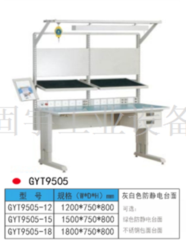 結構 1、防靜電工作臺臺面一般由防靜電三聚氰胺高壓裝飾層壓板(俗稱防靜電防火板)為表面材料與木質材料復合制成。木質材料一般為刨花板,通過嵌入導電體如鋼柱,再通過接地線接地,這樣桌面靜電荷通過接電線順利地泄放到大地。2、也有一些工作臺是不銹鋼的,桌面需要鋪一塊防靜電桌墊,桌墊通過接點線連入大地,達到瀉放靜電的效果。3、防靜電工作臺就是能滿足用戶的普通工作臺功能的基礎上,增加了防靜電功能,也就是如何將靜電瀉放掉!潔凈工作臺 潔凈工作臺是一種層流局部空氣凈化設備,采用可調風量風機系統,在調節(jié)風機工作臺后,可使?jié)崈艄ぷ鲄^的風速始終保持在理想范圍內。(可根據客戶要求配備壓力表、可隨時掌握高效過濾器阻力變化情況。 工作臺結構特點 可分為輕型,中型,重型工作臺。1、采用優(yōu)質鋼板專用模具用輥扎工藝成型,并通過先進的自動化靜電噴涂工藝進行表面處理。 2、根據用戶的承載要求,可選擇不同形狀的桌腳。3、根據用戶要求,工作臺桌面可選擇:高分子復合桌面、防火板桌面、不銹鋼包面、鐵板合成面、櫸木桌面、橡木層壓板左面、防靜電桌面、電木板貼面等 。4、桌上可配照明架、吊架、擱板、方孔掛板、百葉掛板、動力電源插座、電器盒、零件盒掛條等,滿足用戶不同的需求。桌腳上預留安裝孔,方便客戶安裝電源插座。5、桌下可選配各種類型的工具柜,加裝工具柜后,更能合理地利用空間,存放保護工具。可直接在工作桌上加裝臺鉗。滿足用戶裝載物品的需求。6、各種類型的工作桌均采用組合式設計、拆裝組合容易且穩(wěn)固、耐用。